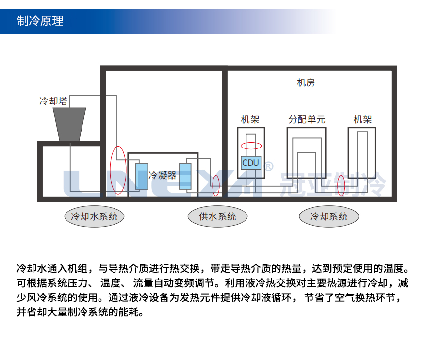 通過液冷CDU為直接接觸服務器發(fā)熱元件的冷板提供冷卻液循環(huán),