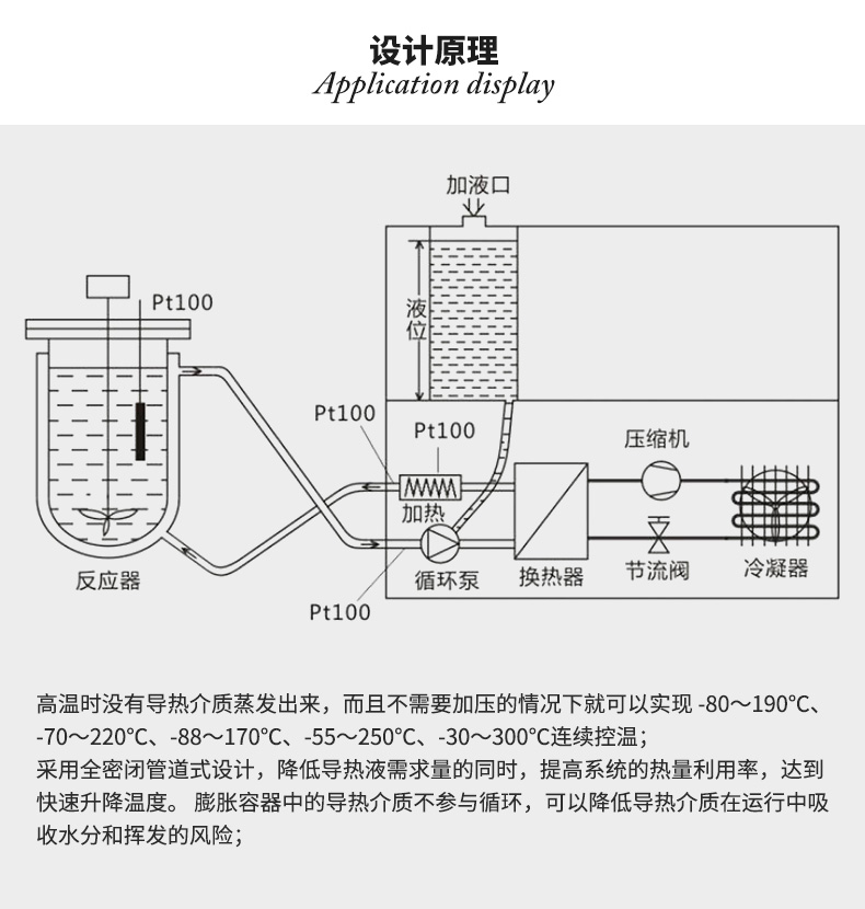 | 密閉循環(huán)系統(tǒng) | 整個系統(tǒng)為全密閉系統(tǒng),高溫時不會有油霧、低溫不吸收空氣中水份,系統(tǒng)在運行中不會因為高溫使壓力上升,低溫自動補充導(dǎo)熱介質(zhì)。 | |