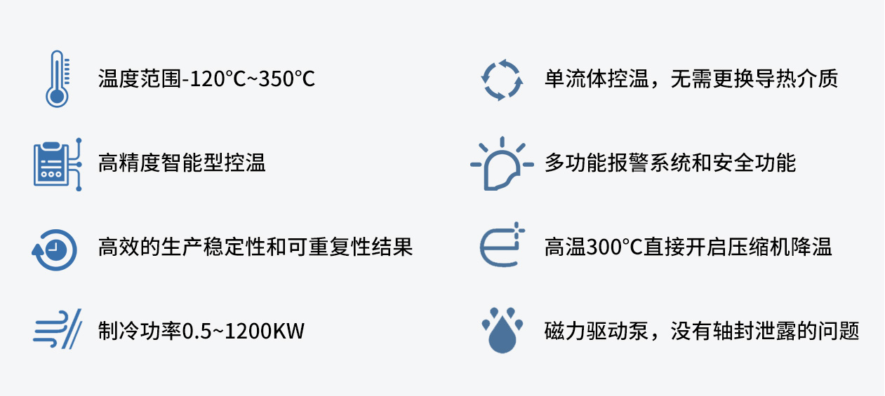 廣泛用于半導體、新材料、生物工程、航天工業(yè)、醫(yī)療、化工等行業(yè); 配微通道、真空設備、蒸餾系統(tǒng)、老化測試等