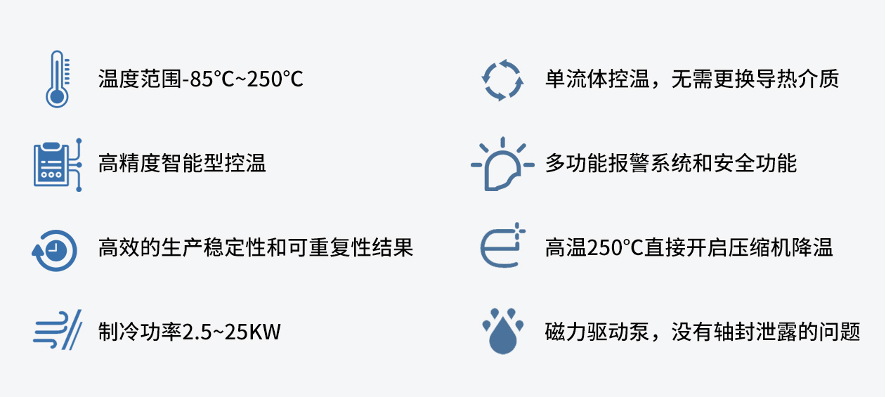 常見的配套設(shè)備有微通道反應(yīng)器 蒸餾結(jié)晶、半導(dǎo)體設(shè)備冷卻、材料老化、結(jié)晶系統(tǒng)控溫