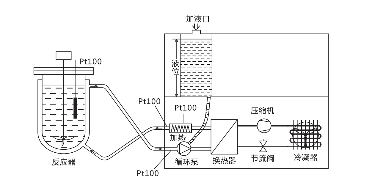 持續(xù)高溫降溫技術(shù),滿足在高溫放熱反應(yīng)時(shí),需要冷熱恒溫控制時(shí)穩(wěn)定運(yùn)行。